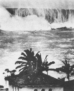 В котловине образовался стремительный водоворот, в который с большой скоростью вовлекались обломки зданий и мелкие суда. Было много жертв.