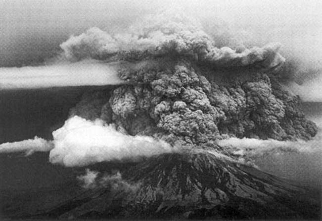 Уникальное зрелище предстало перед глазами очевидцев, на 15000 м. поднялось облако дыма при взрыве вулкана Св. Елены в штате Вашингтон (США) в мае 1980 г. При этом взлетела в воздух вершина 2950 - метровой горы.