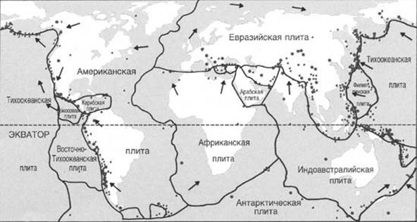 На земном шаре насчитывается примерно 600 активных вулканов, то есть таких вулканов, которые после более или менее продолжительного перерыва могут снова ожить. Большинство расположено на стыках тех участков земной коры, которые называются тектоническими плитами. Вокруг Индонезии, находящейся на одном из таких стыков, более сотни вулканов, на западном побережье Американского континента где соприкасаются Североамериканская и Тихоокеанская плита, высится целая дюжина огнедышащих гор. Эти районы, наряду с восточным побережьем Тихого океана - Камчаткой, Курилами, Японией - наиболее активные вулканические зоны нашей планеты.