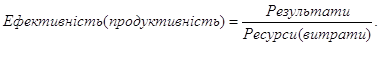 Суспільство ніколи не було байдужим до витрат на досягнення того або іншого успіху. В основі прогреса лежить підвищення ефективності виробництва. Тут розуміється економічна і соціальна результативність господарської діяльності. При знаходженні ефективності потрібно порівнювати очікувану цінність того, що буде отримано, з очікуваної цінністью того, що буде загублено. В практичних розрахунках цей показник знаходиться відношенням результатів виробництва до витрат.