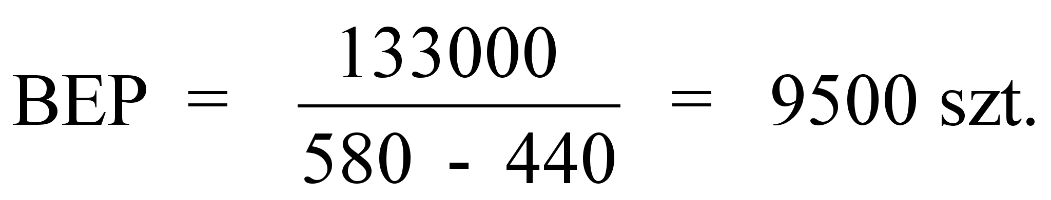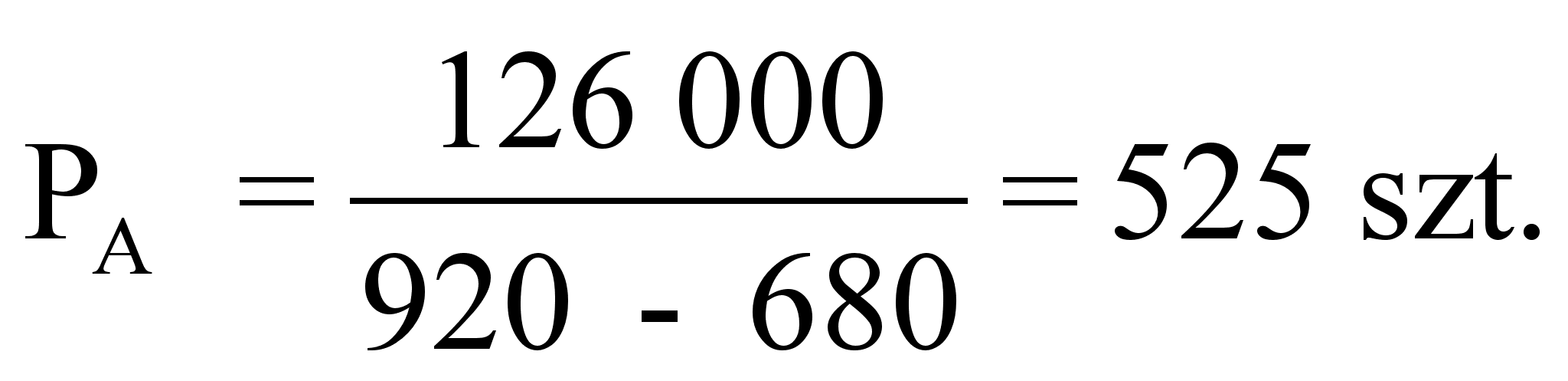 Przedsiębiorstwo produkuje jeden wyrуb. Koszty jednostkowe zmienne wynoszą 440 tys. zł/szt. Przewiduje się, że przy cenie 580 tys. zł/szt. efektywny popyt wyniesie 24 tys.szt. w ciągu roku. Stałe koszty funkcjonowania przedsiębiorstwa wynoszą 1330 mln zł rocznie.