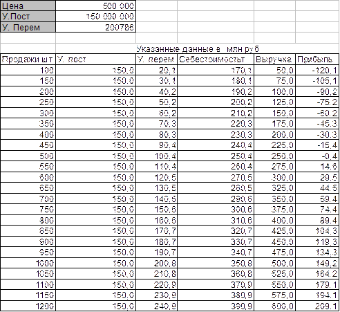 Как только будет продано количество единиц продукции достаточное для того, что бы возместить полную себестоимость, каждая дополнительно проданная единица продукции будет приносить дополнительную прибыль (как разница между суммой выручки и себестоимостью). При этом величина прироста этой прибыли зависит от соотношения У. пост и У. пер. затрат в структуре себестоимости.