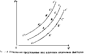 Существуют неценовые факторы, влияющие на предложение (графически отображают сдвигом самой линии предложения: