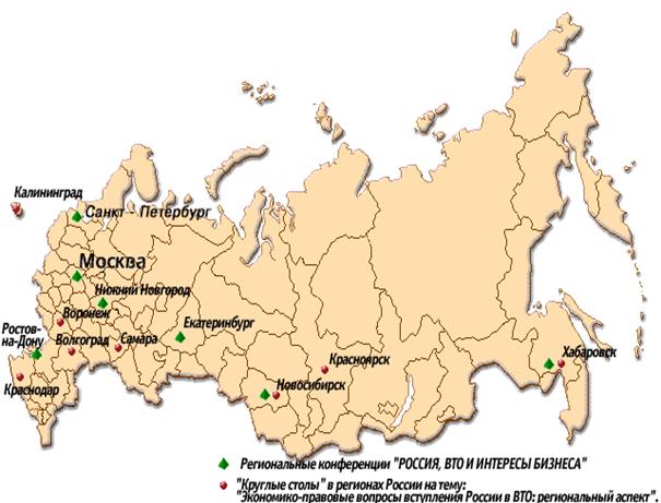 Рисунок 1. Региональные конференции и круглые столы ВТО в России.(2)