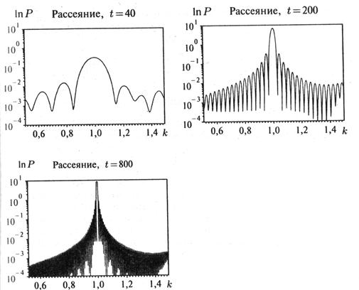 Полученные заключения могут быть подтверждены моделированием вероятности Р как функции от k при возрастающих значениях t. Графики приведены на рис.5(5, 241).