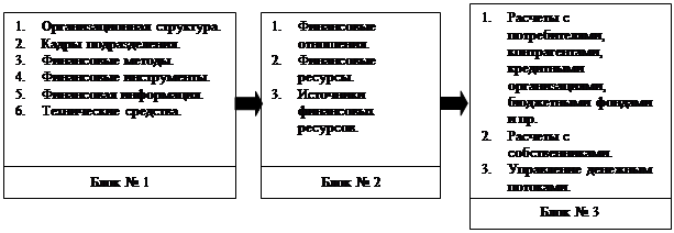 Логика функционирования отдела выглядит следующим образом: информация, поступающая из бухгалтерских отчетов, данные из внешней среды в Блоке № 1 обрабатывается при помощи финансово-экономического анализа, с использованием известных процедур. На основании полученных данных применяются соответствующие механизмы воздействия на переменные в Блоке № 2. Такое воздействие, в свою очередь проявляется в изменении параметров в Блоке № 3. Такая цепочка воздействий повторяется непрерывно на протяжении всего процесса управлению финансовой деятельностью.