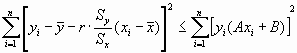 Наименьшая сумма квадратов отклонений наблюденных значений уi от линейной функции Ахi + B, т.е. сумма квадратов отклонений их от значений