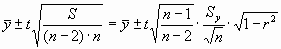 где t - значение коэффициента надежности из таблиц распределения Стьюдента при числе степеней свободы R =n-2 (134).