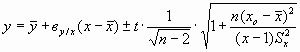 Доверительные оценки отклонения теоретической прямой регрессии от эмпирической для фиксированных значений аргумента x-x0 определяются как: