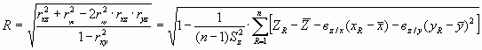 где Sx , Sy , Sz - эмпирические дисперсии при n результатах. Мерой связи Z и (x,y) служит сводный (множественный) коэффициент корреляции: