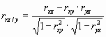 При R=0 между z и величинами x, y нет линейной корреляционной зависимости (но может быть нелинейная). При R=1 (все точки лежит в плоскости (регрессии) имеет место случай линейной функциональной зависимости величины z от х и у. Для изучения корреляции между двумя компонентами (например х и z после устранения влияния у) можно ввести парциальный (частный) коэффициент корреляции: