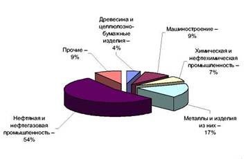 В общем объеме экспорта высокой остается доля нефти и природного газа, а также продукции черной и цветной металлургии, химической и нефтехимической промышленности (табл. 1).
