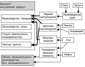 Аналогичная ситуация сложилась в черной металлургии. В полученных связях выявлена обратная зависимость валового продукта от производства черных металлов.