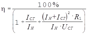 Вычислим КПД источника опорного напряжения в номинальном режиме: