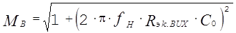 Определим величину коэффициента частотных искажений каскада на верхних частотах диапазона: