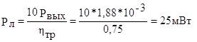 Принимаем трансформаторную схему выходного каскада с hтр=0,75 вычислим номиналь-