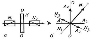 в параллельном световом потоке (N1 - поляризатор, N2 - анализатор; К - пластинка