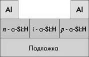 Проблема с применением рассмотренных p-i-n-элементов в том, что их можно оптимизировать только в одном измерении. Значительно больше возможностей в этом плане предоставляет СЭ с поперечным переходом (4): на изолирующей подложке перпендикулярно к поверхности формируется p-i-n-структура a-Si:H (рис. 9). Такой СЭ не требует прозрачного проводящего оксида в качестве контакта и широкозонного p-слоя для создания прозрачного оконного слоя, его можно изготовить посредством стандартных технологий микроэлектроники.