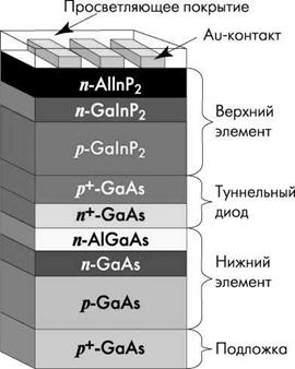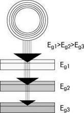 Рис.14. Принцип построения многопереходного солнечного элемента |