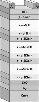 Рис.16. Трехкаскадный солнечный элемент на основе сплавов a-SiGe:H |