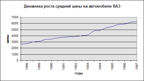 Диаграмма иллюстрирует цены на новые ВАЗ 1997 года выпуска.