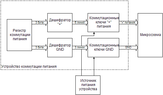 10) 8-разрядный регистр управления коммутацией напряжения питания ИМС;