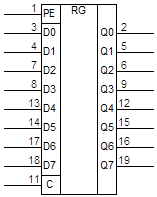 | Режим работы | Вход C | Вход /PE | Вход Dn | Выход Qn |