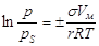 Под адсорбционным потенциалом e следует понимать работу, совершаемую против адсорбционных сил при перемещении одного моля газа с поверхности жидкого адсорбата (рs) в газовую фазу (р). В теории Поляни сделано допущение, что практически все адсорбированное вещество находится в жидком состоянии. Это позволяет заменить зависимость адсорбционного потенциала от расстояния (которое для пористого адсорбента определить невозможно) на функцию объемного жидкого адсорбента. Этот объем можно определить из экспериментально полученной изотермы адсорбции (рис. 2.3.2.5), дающей величину адсорбции: