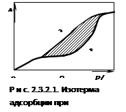 Для адсорбентов переходной пористости характерна изотерма адсорбции с петлей капиллярно-конденсационного гистерезиса (рис. 2.3.2.1). При малых давлениях, когда конденсация не происходит, гистерезис не наблюдается. Начало его появления зависит от природы адсорбента и адсорбата.
