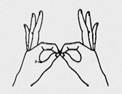 Заводим мотоцикл и "едем": локти рук касаются противоположных колен.