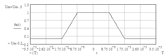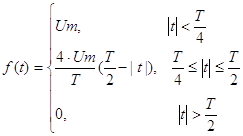 2.3.1 Видеосигнал – трапеция, определенная на промежутке времени от -Т/2 до Т/2, длительность боковых сторон Т/4. Амплитуда 1В.