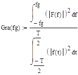 Ограничим спектр исходного видеосигнала некоторой граничной частотой fg, таким образом, что бы энергия сигнала, с «ограниченным спектром» была равна 99% энергии исходного сигнала. Находим граничную частоту по формуле, из условия: