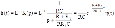 Однако на практике при расчетах операторным методом пользуются таблицами прямых и обратных преобразований Лапласа. Это в значительной мере облегчает вычисления. Вычислив обратное преобразование Лапласа от операторного коэффициента передачи его получим: