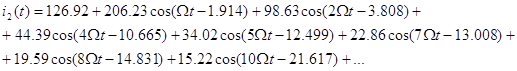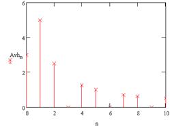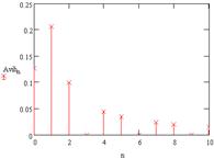 Определим амплитуды гармоник входного сигнала. Для прямоугольного импульса формула будет иметь вид (7.1):