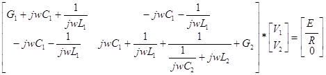 Базисным узлом примем узел с номером 0,который является заземленным. По методу узловых напряжений получаем матрицу: