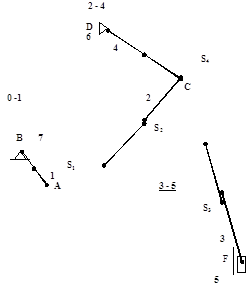 | 7. | Центры тяжести S1, S2,S3, S4,S5 расположены посередине соответствующих звеньев | |