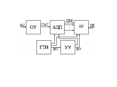 АЦП – аналого-цифровой преобразователь (преобразователь аналогового сигнала в параллельный восьмиразрядный код)