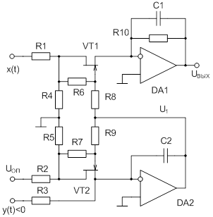 - если в качестве управляемого сопротивления используется терморезистор, то входные сигналы будут браться по модулю;