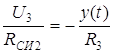 При условии, что входными токами операционных усилителей можно пренебречь, ток через транзистор VT2 (через сопротивление RСИ2) равен току через сопротивление R3. Охваченный отрицательно обратной связью операционный усилитель DA2 на инвертирующем входе имеет нулевой потенциал. Исходя из этих двух утверждений, можно записать: