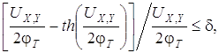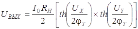 Из выражения (2.1) следует, что зависимость выходного напряжения от входных сигналов существенно нелинейная. Разложив гиперболический тангенс в ряд и ограничившись первым членом разложения, получим (1):