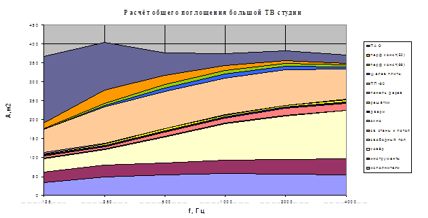 Рис.1. – Расчет общего поглощения большой ТВ студии