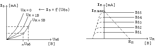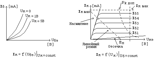 Рис.6. Входные и выходные вольт - амперные характеристики транзистора включенного по схеме с ОЭ.