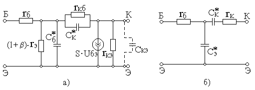 Рис.9. Эквивалентные схемы для активного режима а) и режима отсечки б).