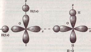 Схема образования связей в молекуле воды.
