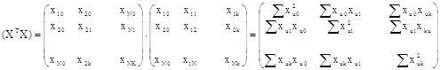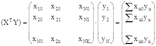 Умножив транспонированную матрицу X на матрицу Y, получим:
