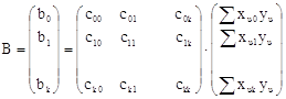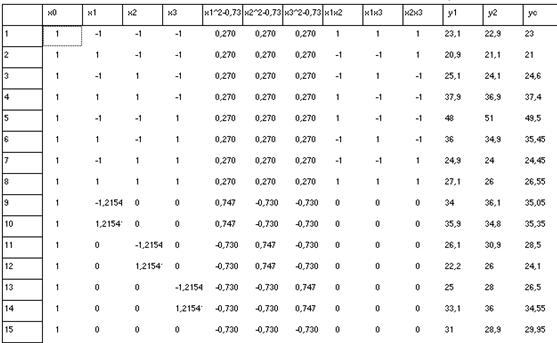 где X – матрица условий эксперимента; Y – матрица результатов опытов; B – матрица коэффициентов.