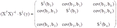 Все статистические свойства коэффициентов линии регрессии определяется матрицей дисперсий ковариаций.