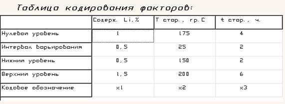 Таблица 1 - Таблица кодирования факторов