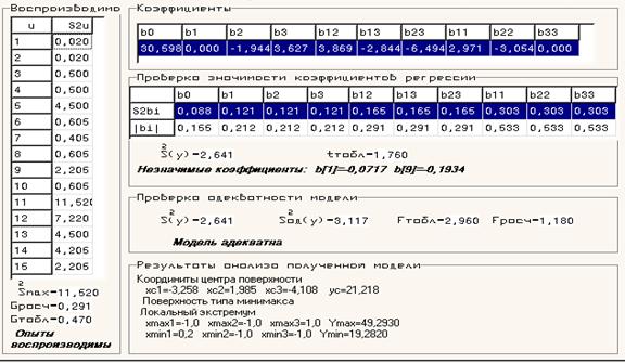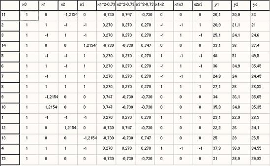 Задача заключается в том, чтобы по результатам наблюдений определить значения коэффициентов bi, дисперсии и доверительные границы для них, а также определить их значимость.