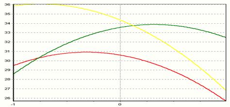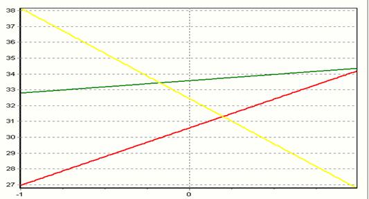 6) Построить двумерные сечения поверхности отклика, соответствующие пересечению поверхности с плоскостями Xi=Ximax. Для этого в уравнение регрессии необходимо подставить значение этого фактора, и по полученным двухфакторным уравнениям рассчитать, а потом построить изолинии поверхности отклика (кривые равного выхода).
